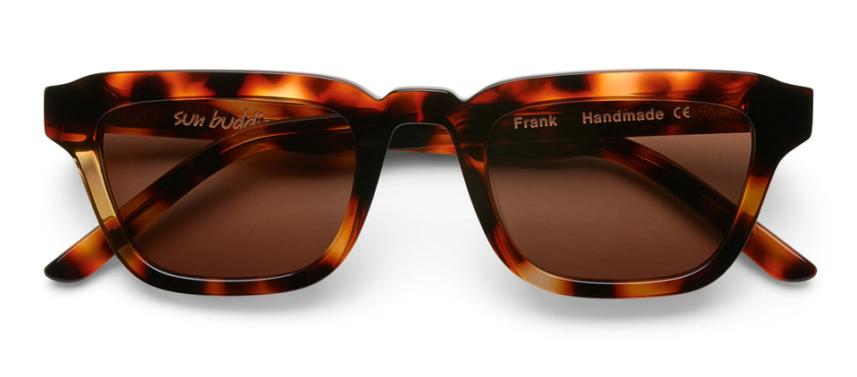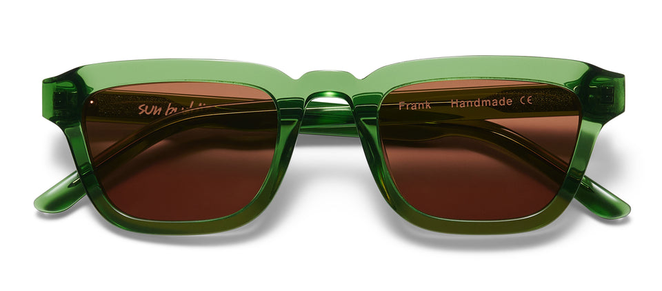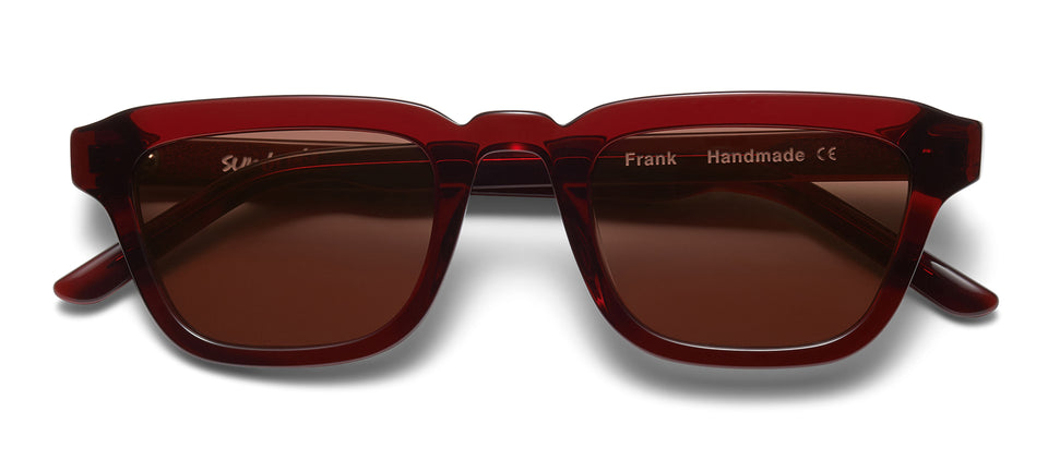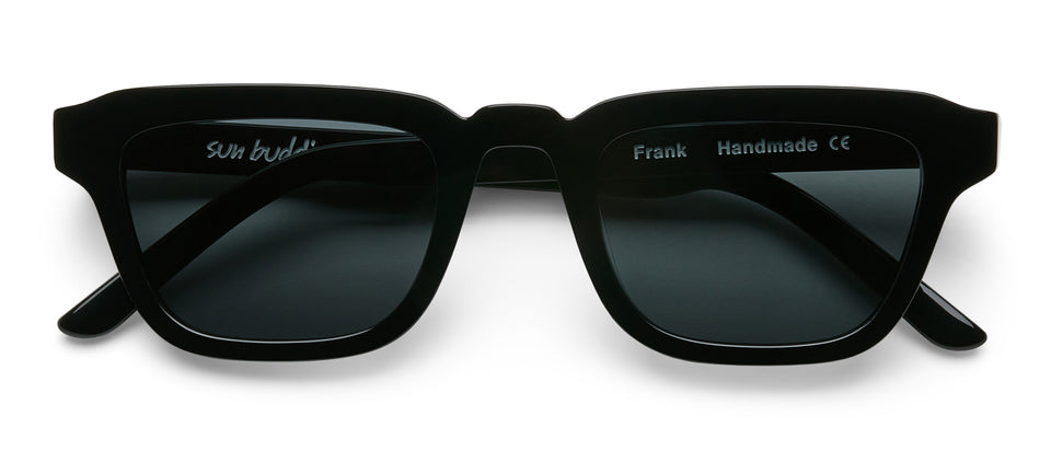 Thinner, square framed Sunglasses in a vintage inspired design. Handmade of Italian Mazzucchelli acetate. A seven bar hinge with two visible rivets on the temple.